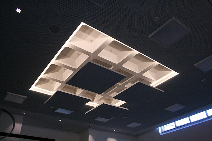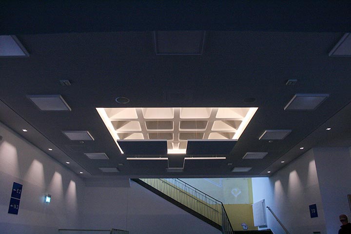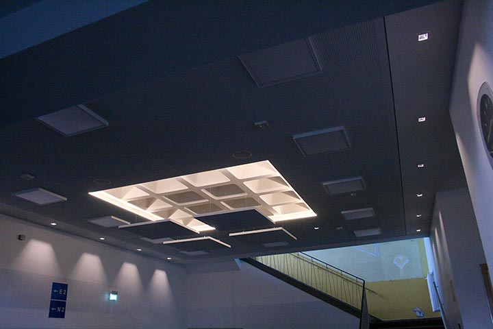 Erneuerung der Akustikdecke im Foyer, unter Berücksichtigung des Denkmalschutzes.
