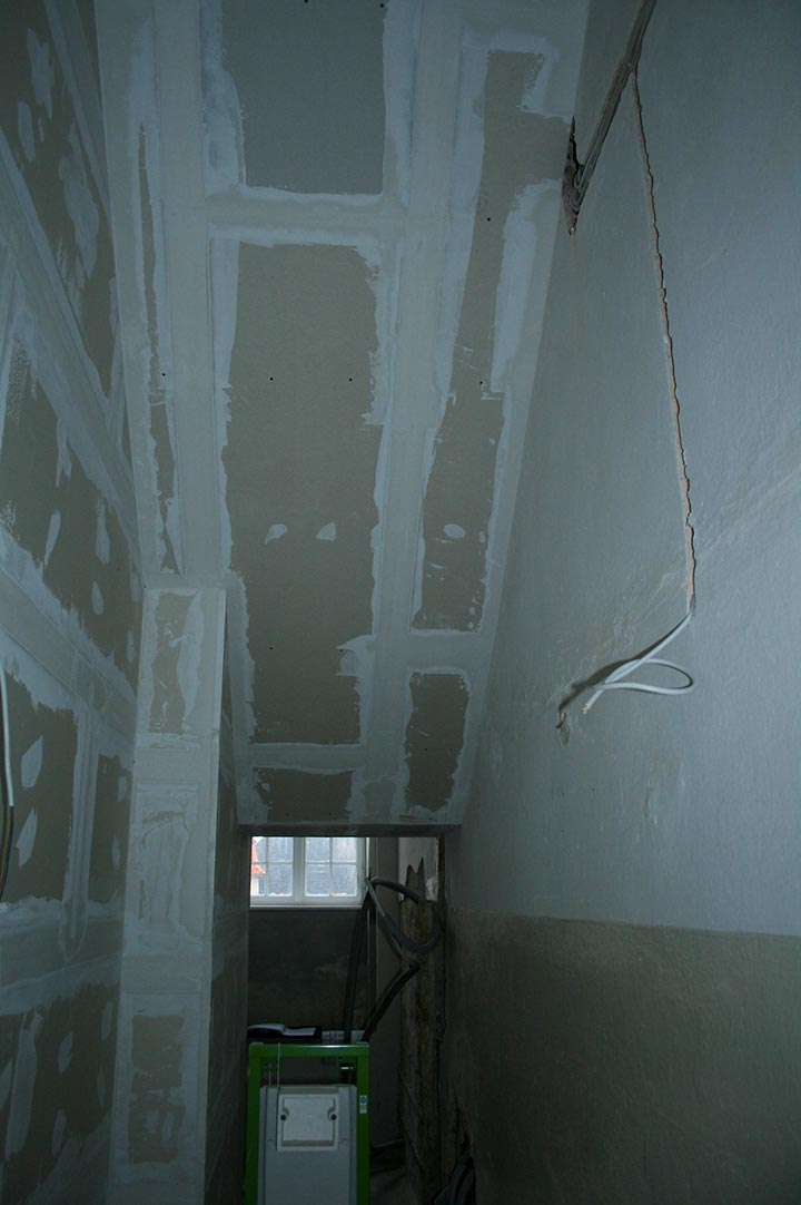 Dachdämmung, neue Grundrissaufteilung mit erhöhtem Anspruch auf Brandschutz und Schallschutz und Denkmalschutz.