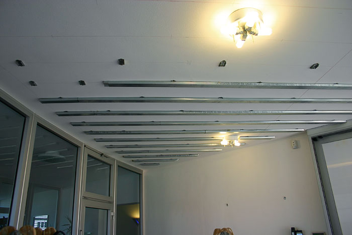 Einbau von Akustik-Lochdecken Knauf-Cleaneo.